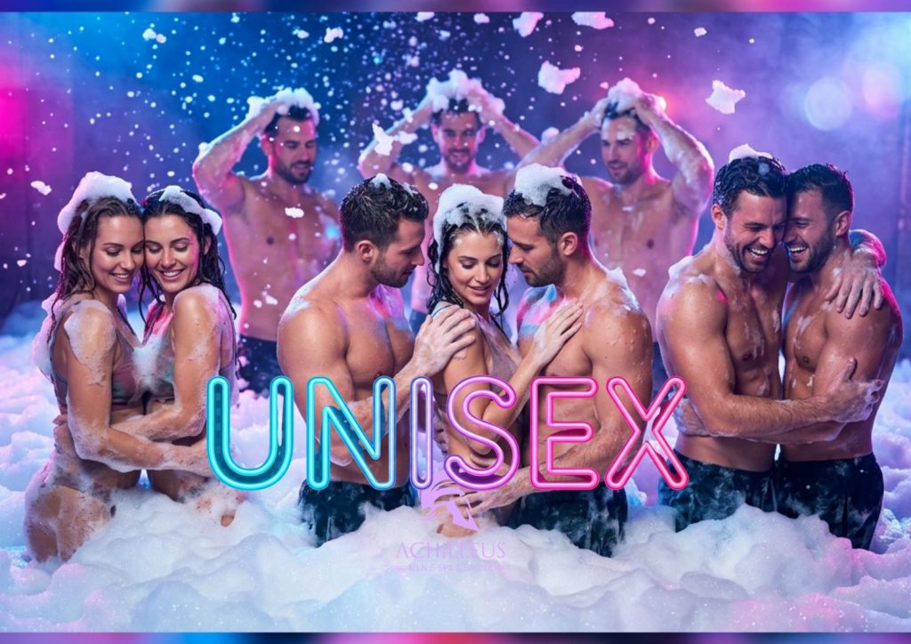 Diesmal allerdings haben wir UNISEX-Special. Das heißt, Es wird feucht-fröhlich in der Achilleus. An diesem UNISEX-Special fluten wir unser XXL-Dampfbad – natürlich ohne Dampf – von 18-23 Uhr mit Megaschaum.